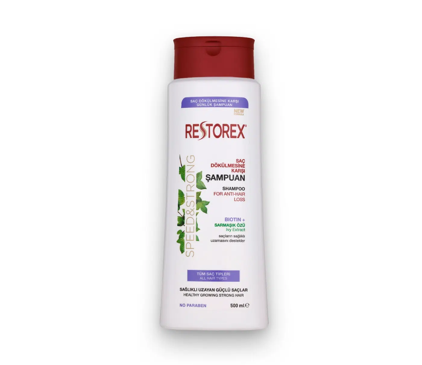 Saç dökülmesine karşı etkili formülüyle geliştirilen Restorex Saç Dökülmesine Karşı Şampuan, saç köklerini besleyerek saçın sağlıklı ve güçlü uzamasına yardımcı olur. Speed & Strong Serisine ait olan bu özel şampuan, içeriğindeki sarmaşık özü sayesinde saç derisini arındırırken saç tellerini kökten uca güçlendirir ve dökülmeyi azaltır.